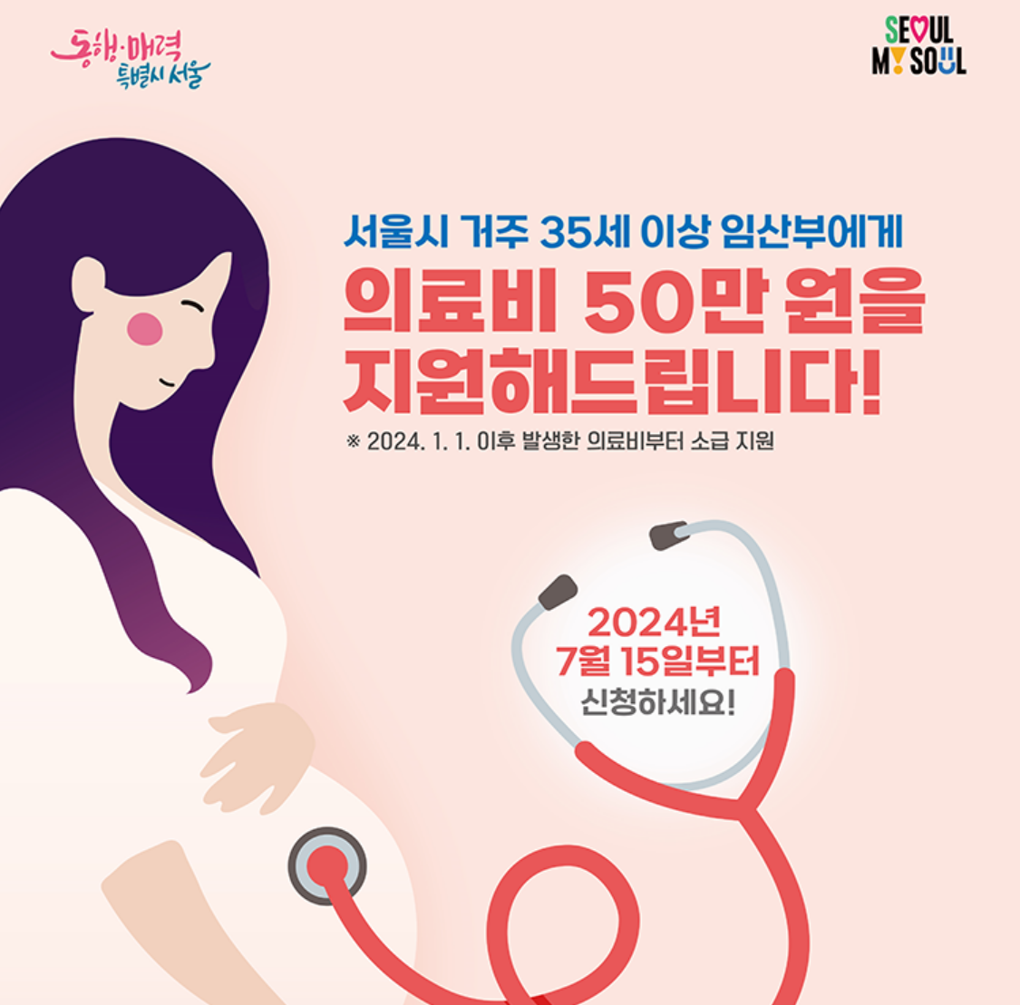 산전 검사비 지원은 7월 15일부터 신청할 수 있으며, 올해 1월 1일부터 지출한 검사비, 외래진료비 등 산전관리 의료비도 소급 지원받을 수 있다.