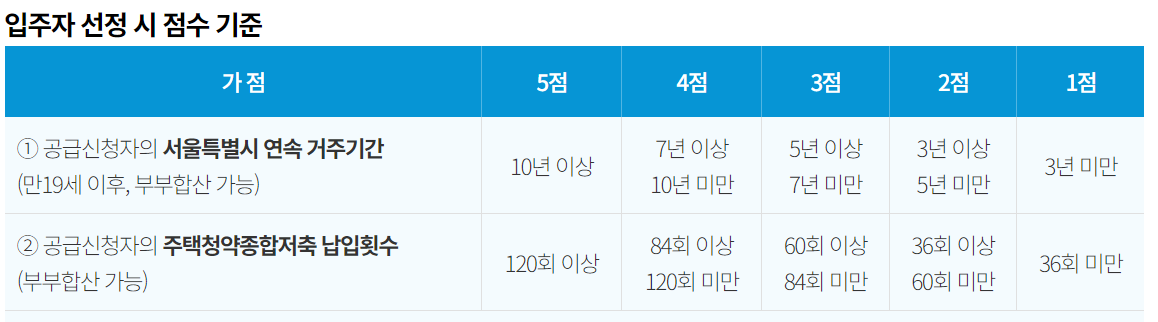 또 시는 20~30대 초반 젊은 신혼부부의 입주 기회를 확대하기 위해 ▴무주택기간 가점을 폐지하는 대신 ▴서울시 연속 거주기간 ▴청약저축 납입 횟수로 가점을 부여키로 입주자 선정 기준을 수정했다. 높은 점수순으로 선정하되 동점자는 추첨한다.
