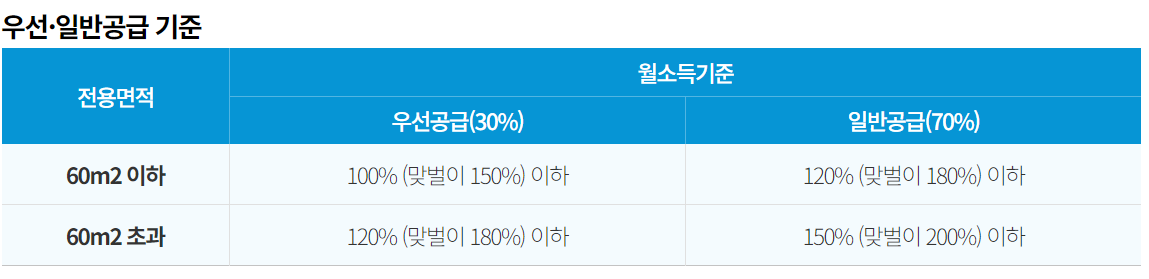 혼인신고 한 날로부터 7년 이내인 신혼부부 또는 모집공고일로부터 6개월 이내 혼인신고 예정인 예비 신혼부부를 대상으로 공급하며, 부부 모두 공고일 기준 5년 이내 주택을 소유하지 않아야 한다.
